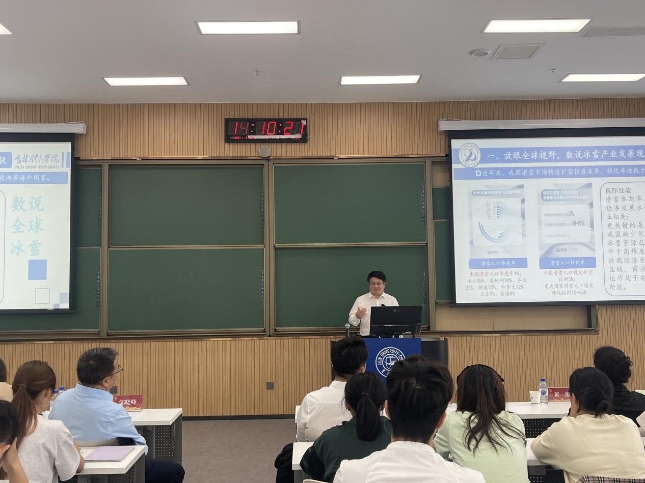 首先,邵教授从全球视角梳理了全球冰雪产业的发展历程、资源分布、市场规模、经济发展模式等情况,并通过详实数据深入分析了中国冰雪产业的发展历程、政策演进和发展成就。他强调,自2022年北京冬奥会以来,我国冰雪经济呈现跨越式发展,得益于习近平总书记关于冰雪运动的重要论述和各级政府的高度重视。其次,他分析了冰雪产业融合发展的本质特征、结构要素和功能作用,提出了"生产-生活-生态"三维融合的高质量发展模式。围绕冰雪运动、冰雪文化、冰雪装备、冰雪旅游四大关键领域,阐述了冰雪经济高质量发展的创新路径。最后,在人才培养方面,邵教授结合教育实践经验,构建了涵盖冰雪经营管理、教学指导、竞技运动、技术保障四大类型的人才需求体系,并创新性地提出了"七大计划"冰雪人才培养举措。